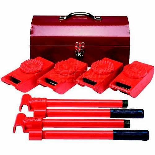 Machinery Mover Kit includes (4) 2,000 lb. capacity Movers, (2) 36″L Steering Handles and a FREE Tool Box for storage.